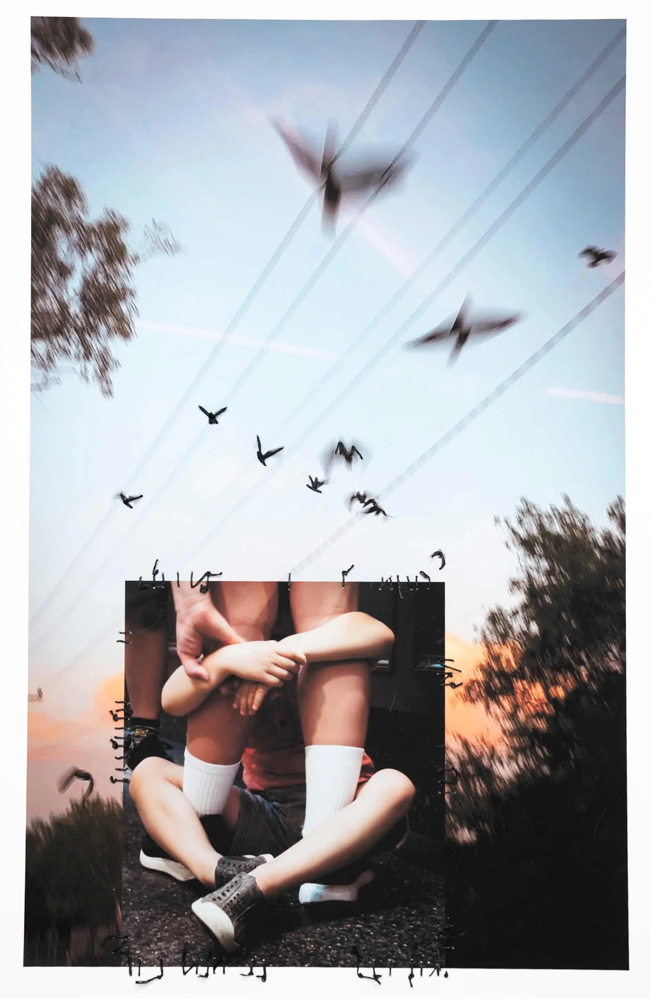 "When the world feels chaotic, collage emerges," David Hockney observed. This work answers that call. The images are liminal: blurred photographs, fragmented figures, layers of media, erasure, and stitching—contemporary quilts of a fractured moment. Defamiliarization is the engine: repeating, inverting, and juxtaposing until the normalized becomes visible again. Political collage was born to reflect a complex, fractured, post-truth society back onto itself.
