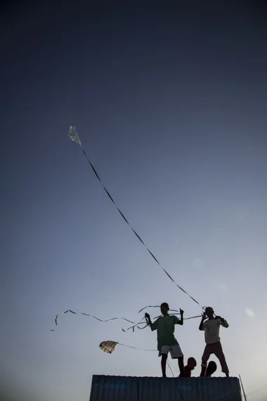 I worry for their safety, but I continue shooting. It is beautiful. I shot them silhouetted against the sunset, their kites bouncing joyfully in the air; like kids with toys anywhere in the world.